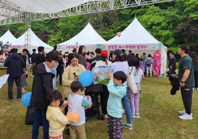 또한 환상의 인형극으로 초대와 서희를 찾아라(보물찾기), 수제초콜릿 만들기, 그리고 물풍선 받기, 엄마 찾아 삼만리, 오재미 놀이 등 가족이 함께 할 수 있는 프로그램을 준비했다. 푸짐한 선물을 받은 아이들과 엄마의 환한 모습에서 비가와도 나들이 오길 잘했다는 표정이 역력했다