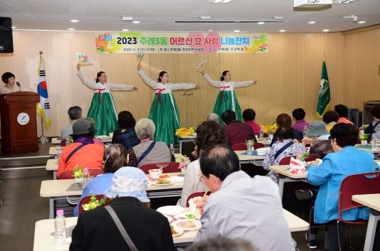 이번 행사는 어버이날을 맞아 지역 어르신들에 대한 존경과 감사의 마음을 전하기 위해 주민자치위원회에서 주관하고 주례3동 각 급 단체의 후원으로 마련됐다.