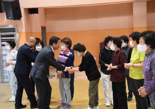이어 노인복지회관 체조교실 수강생들을 직접 찾아뵙고 존경과 감사의 인사를 전하는 따뜻한 시간을 가졌다.