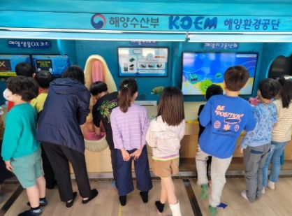 ‘해양환경 이동교실’은 해양환경 체험교육이 가능한 대형 차량을 활용하여 전국의 유치원・초등학교에 방문하는 이동형 체험교실로, 현재 수도권, 서해권, 남해권, 동해권에서 각 한 대씩 운영되고 있다. 이동교실에서는 해양환경 전문 강사가 해양환경 관련 다양한 콘텐츠를 주제로 교육을 진행한다.