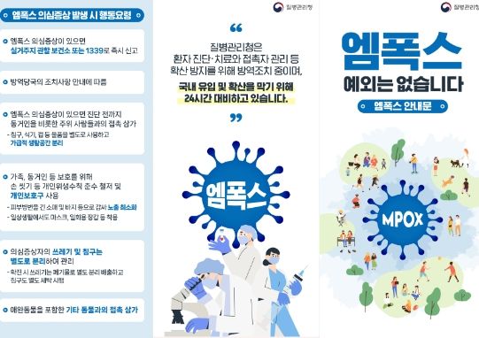 엠폭스 임상증상은 주로 항문생식기 통증을 동반한 국소피부병변(궤양, 종창, 발진), 38.5도 이상의 급성 발열, 생식기발진, 근육통 등이다. 감염경로는 주로 확진환자의 발진 부위를 직접 만지거나 성접촉을 통한 밀접접촉, 확진자의 침구류·식기 등 오염된 물질과 접촉할 경우 감염될 수 있다.
