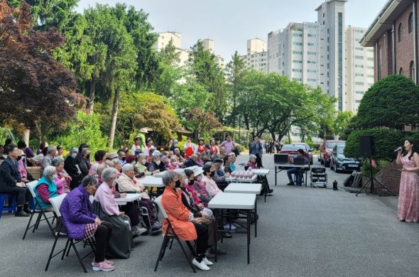[제주교통복지신문 김강석 기자] 어버이날인 8일 오후, 수원시 조원동에 있는 무료 양로시설인 ‘평화의 모후원’ 앞마당에서 ‘5월 작은 음악회’가 열렸다.