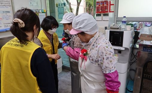 [제주교통복지신문 김강석 기자] 경산시 가족센터 비나리 가족봉사단은 8일, 어버이날을 맞아 백천종합사회복지관과 함께 어르신들에게 직접 만든 카네이션을 달아드리는 봉사활동을 했다.