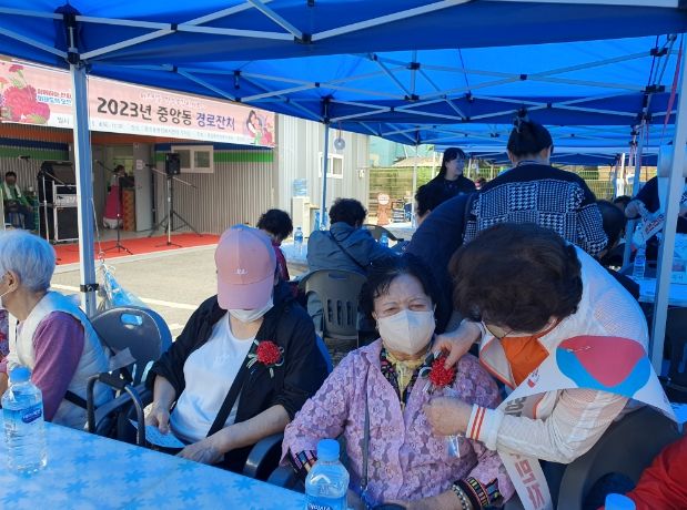 매해 열린 이 경로잔치는 코로나19 장기화로 한동안 개최되지 못하다가 올해 재개됐다. 중앙동은 어버이 은혜에 감사하고 공경의 마음을 담아 정성스럽게 마련한 음식과 다과를 대접하며 어르신들에게 감사의 마음을 전했다.