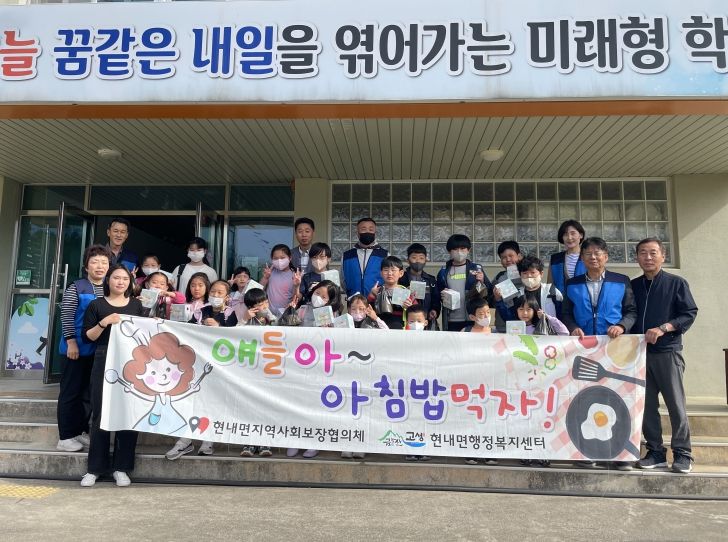 이번 사업은 현내면 지역사회보장협의체의 특화사업으로, 등굣길 학생들을 대상으로 건강하고 올바른 식습관 형성을 위해 아침밥 먹기의 중요성을 알리고 있다.