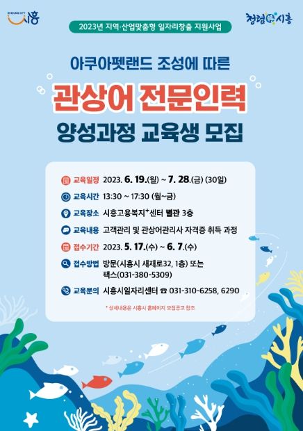 [제주교통복지신문 김강석 기자] 시흥시가 국내 최초, 최대 규모의 관상어 생산 및 유통 시설 집적화 단지인 ‘아쿠아펫랜드’와 연계한 ‘관상어 전문인력 양성과정’을 운영해 고용률을 높이고 지역 경제 활성화에 집중한다.