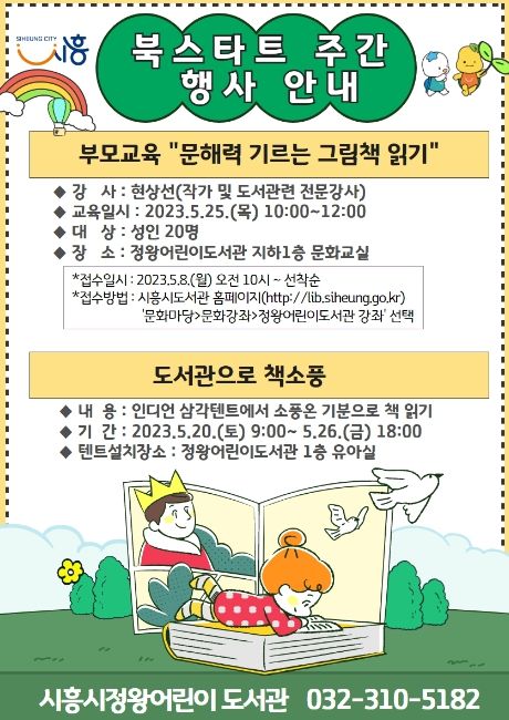 [제주교통복지신문 김강석 기자] 시흥시 정왕어린이도서관은 ‘한국 북스타트 20주년’을 맞아 ‘북스타트 주간’ 행사를 5월 20일부터 26일까지 운영한다.