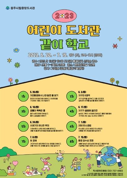 [제주교통복지신문 김강석 기자] 원주시립중앙도서관은 초등 1~3학년을 대상으로 ‘어린이 도서관 같이 학교’를 운영한다.