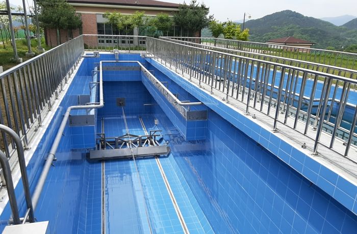 1억 3000만원이 투입된 이번 보수공사에서는 장시간 사용으로 인해 내구성이 저하된 침전지에 내구성이 강한 위생 타일을 부착했다.