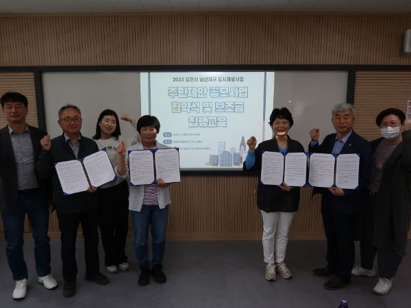 [제주교통복지신문 김강석 기자] 김천시는 지난 4일 평화동 복합문화센터에서 2023년 남산지구 도시재생 주민 제안 공모사업으로 선정된 4개의 주민단체와 협약을 체결했다.