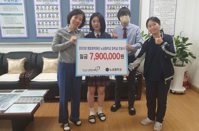 [제주교통복지신문 김강석 기자] 노성중학교는 9일 청암장학재단으로부터 작년에 이어 장학금 790만원을 전달받았고 전교생에게 10만원씩 장학금을 지급했다.