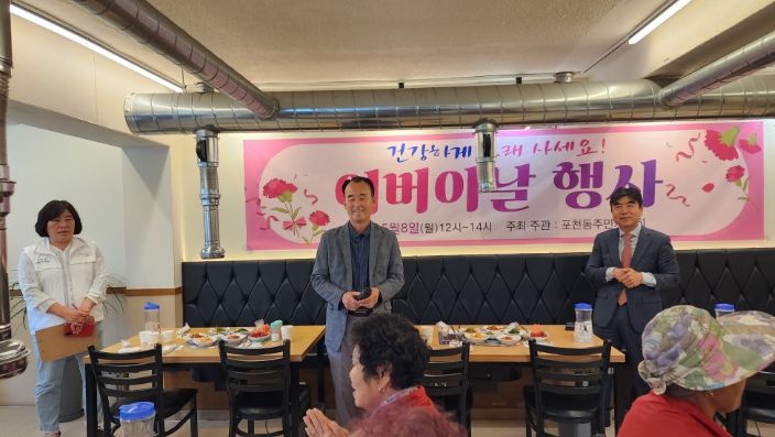 [제주교통복지신문 김강석 기자] 포천동 주민자치회는 지난 8일 포천동에 거주하는 홀몸어르신 30명을 초청해 점심을 대접하고 어버이날 감사 행사를 개최했다.