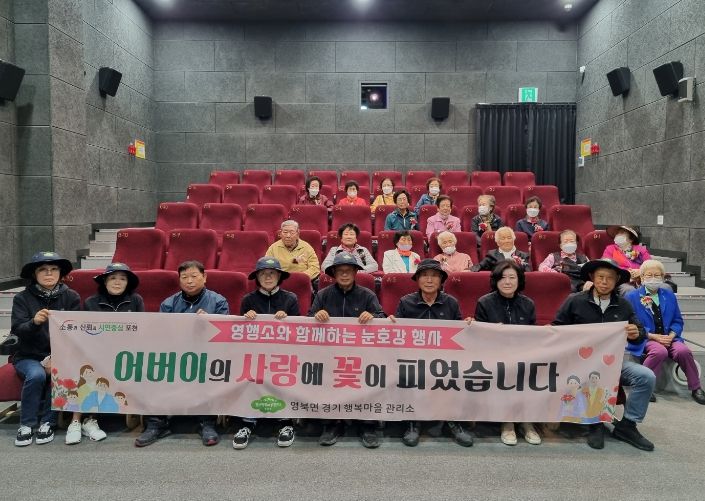 이날 행사에는 어르신 50여 명이 함께 했으며, 어버이날을 맞아 영북면 행복마을관리소 지킴이들이 노인분들에게 직접 카네이션을 달아드리고, 영북면 소재 영화관 클라우드 시네마에서 가족영화 ‘개를 춤치는 완벽한 방법’을 관람했다.