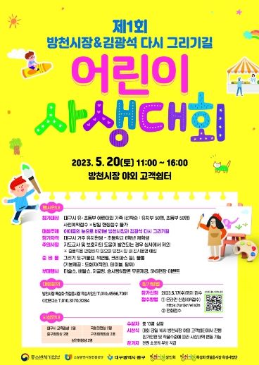 방천시장상인회(회장 정춘남)가 주최하고 방천시장 첫걸음사업단(단장 김대기)이 주관하는 이 대회는 대구시에 거주하는 유치원생, 초등학생들이 참가해 ‘아이들의 눈으로 바라본 방천시상과 김광석 다시 그리기길’을 주제로 방천시장의 풍경을 그리는 대회다.