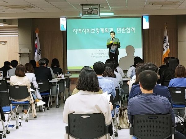 교육을 위해 북구는 대구사이버대학교 사회복지학과 채현탁 교수를 초빙하여 ‘지역사회보장계획와 민관협력’을 주제로 강의를 진행했다.