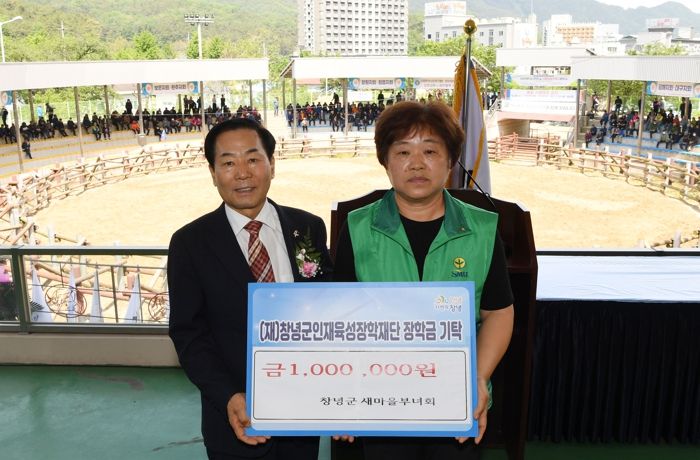 이번 장학금은 창녕 전국 민속소힘겨루기대회 기간에 창녕군새마을부녀회가 부스를 운영(음료 등 판매)해 마련한 수익금이어서 그 의미가 더 크다.