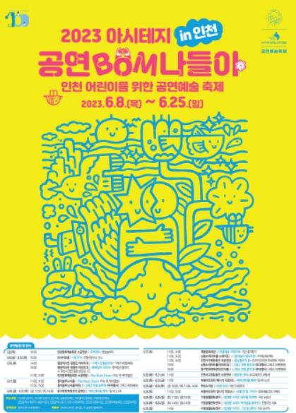 [제주교통복지신문 김강석 기자] 인천서구문화재단은 인천의 10개 공공극장과 (사)국제아동청소년연극협회 한국본부는 어린이를 위해 우수작품을 발굴하고 어린이들이 인천 곳곳에서 다양한 공연예술을 즐길 수 있도록 오는 6월 8일부터 6월 25일까지, '2023 인천 어린이 공연예술 축제 - 아시테지 BOM 나들이'를 개최한다.