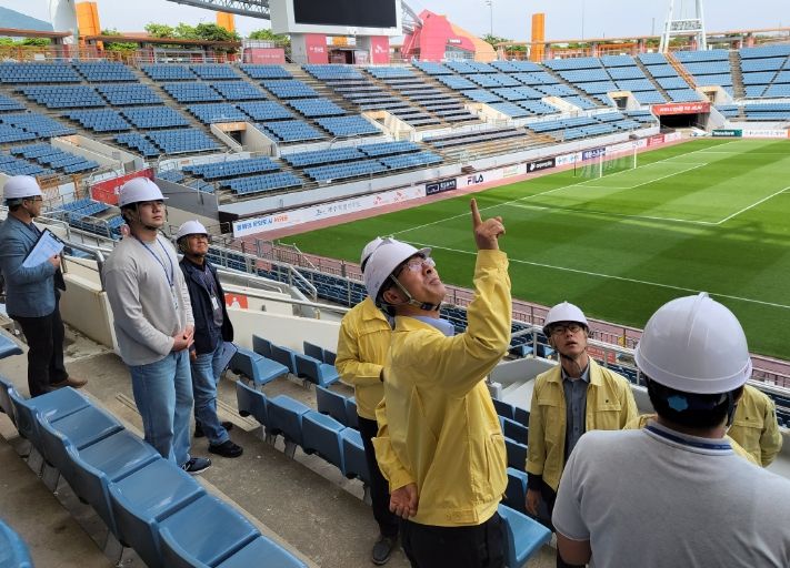 또한, 집중 안전점검 기간 운영에 대한 홍보와 내실있는 안전점검 실시를 위하여 서귀포시장・부시장을 비롯한 시설물 담당 부서장이 직접 참여하여 안전점검에 나서고 있으며, 8일에는 서귀포시 오인수 부시장이 참여하여 민간전문가(교수, 기술사)로 구성된 민관합동점검단과 함께 제주월드컵경기장의 시설물 안전상태 점검에 나섰으며, △관람석 등 시설물 안전관리 △화재취약요소 등을 집중적으로 점검했다.