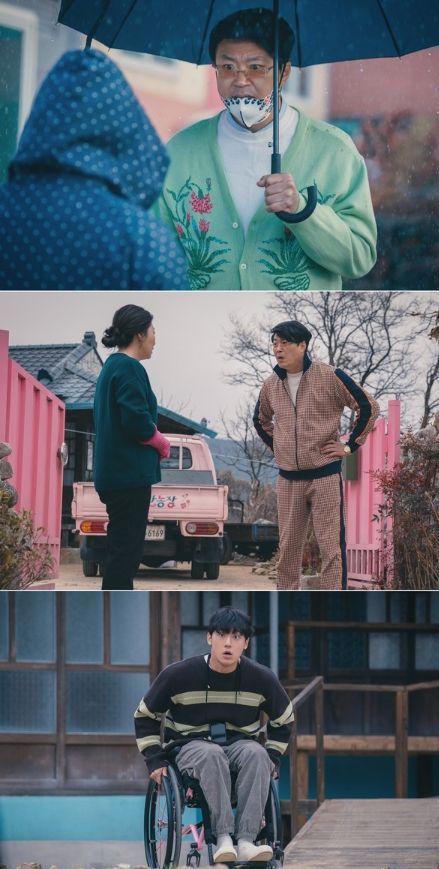 그런 그가 영순의 돼지 농장까지 찾아온 까닭은 무엇인지, 서로를 못마땅한 듯 흘기는 눈빛에 불꽃이 튄다. 이어진 사진에는 트롯백이 영순의 집 앞까지 들이닥쳤다. 영순의 당황한 기색과 달리 트롯백의 기세등등한 태도가 눈길을 끈다.