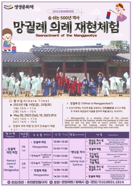 [제주교통복지신문 김강석 기자] 경기도 지정 유형문화재 제137호 팽성읍 객사 일원에서 펼쳐지는 생생문화재 사업은 2015년부터 시작하여 올해로 9년 차를 맞이하며, 지역의 문화재를 발굴하고 주민과 함께 활용하기 위한 사업으로, 평택시 팽성읍 15개 단체 및 주민들이 주도적으로 참여하고 있다. 특히 k6캠프험프리스(미군부대) 가족들이 함께 참여하는 보기 드문 축제로 추진된다.