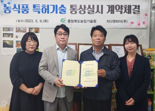 [제주교통복지신문 김강석 기자] 충북농업기술원은 팽이버섯을 이용한 가공식품 제조방법 특허 기술을 지디앤와이㈜(대표 채우중)에 9일 기술이전 재계약을 체결했다고 밝혔다.