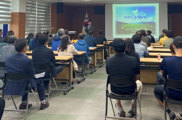 이날 강연은 농업환경 변화에 대한 이해와 미래농업에 대응하기 위한 자질 함양을 목적으로 실시했다.