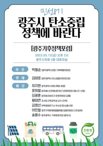 [제주교통복지신문 김강석 기자] 기후위기 시대, 시민들이 바라는 탄소중립 정책을 민선8기 광주시에 제안하는 장이 광주시의회에서 열린다.