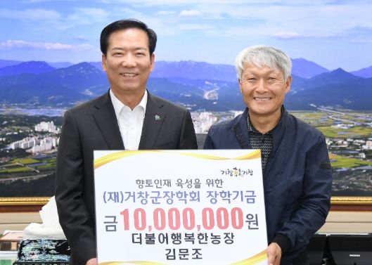 [제주교통복지신문 김강석 기자] (재)거창군장학회는 9일 김문조 더불어행복한농장 대표가 제17회 한사랑농촌문화시상식 농업(축산)부문에서 받은 수상금 1000만 원 전액을 장학금으로 기탁했다고 밝혔다.