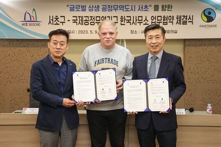 [제주교통복지신문 김강석 기자] 서울 서초구는 9일 공정무역 활성화 및 공정무역 실천을 위한 협력체계 구축을 위해 국제공정무역 한국사무소와 업무협약을 체결했다.