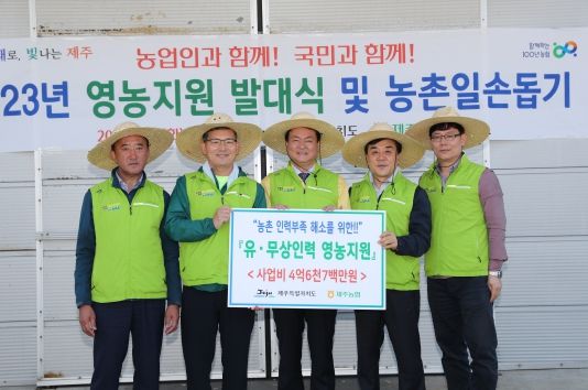 [제주교통복지신문 김현석 기자] 김희현 제주특별자치도 정무부지사는 9일 농협중앙회 제주지역본부가 주관한 2023년 농번기 영농지원 발대식에 참석해 일손 돕기에 참여하는 기관·단체 관계자를 격려했다.