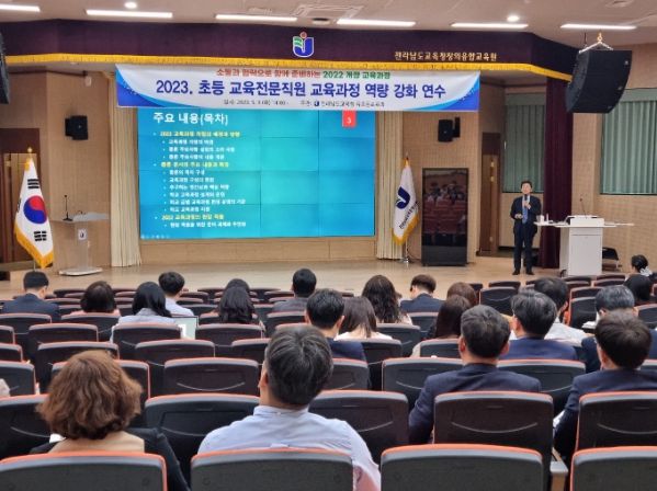 [제주교통복지신문 김강석 기자] 전라남도교육청이 5월 9일 전라남도교육청창의융합교육원 대강당에서 초등 교육전문직원 120여 명을 대상으로 2022 개정 교육과정 이해 연수를 실시했다.