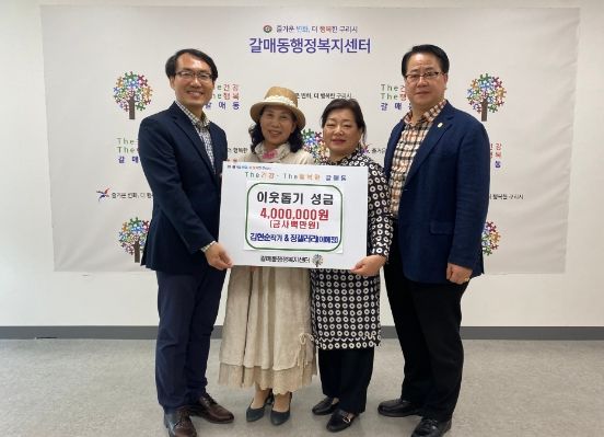 [제주교통복지신문 김강석 기자] 구리시 갈매동 행정복지센터는 지난 4일 정갤러리카페와 김현순 작가로부터 카페 내 전시작품 판매금 400만 원을 전달받았다.
