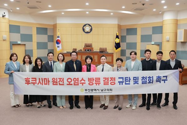 남구의회는 일본 정부의 후쿠시마 원전 오염수 방류는 전 세계 바다를 오염시켜 해양 생태계에 악영향을 끼치고 국내 수산업에 피해를 입힐 것이라고 비판하고 방류 결정 철회를 촉구했다.