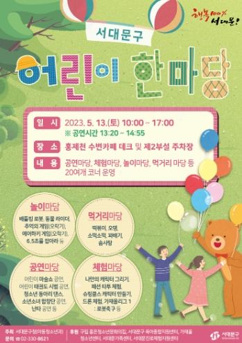 [제주교통복지신문 김강석 기자] 비 내린 어린이날의 아쉬움 덜 수 있는 행사가 서대문구에서 열린다.