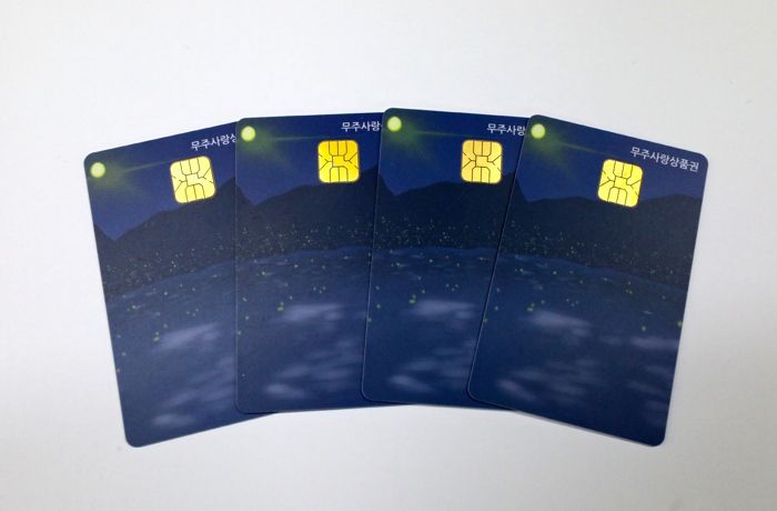 무주군에 따르면 무주사랑상품권의 월 구매 한도는 70만 원으로 카드형 무주사랑상품권 충전은 고향사랑페이 앱 또는 무주농협 등 관내 상품권 판매 대행점에서 가능하며 5% 추가 인센티브는 6월중 충전 예정이다.