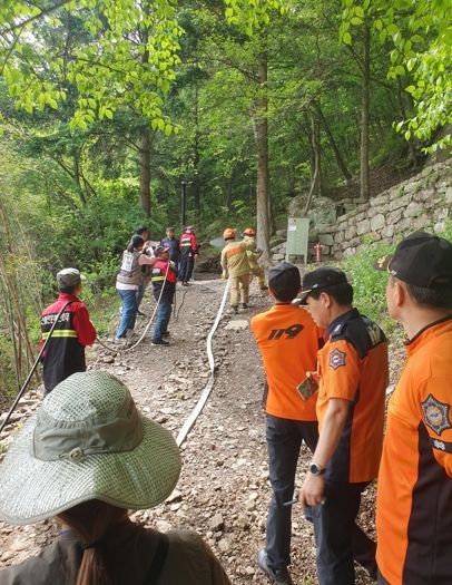 훈련 내용은 가상의 산불 발생 상황에서 재난대응 매뉴얼에 따라 △화재신고 △초기진화 △주민대피 △동산문화재 반출 △소방차 출동 화재진압 등을 실시하고, 현장대응력을 높였다.
