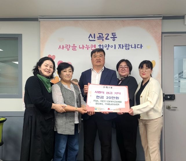 [제주교통복지신문 김강석 기자] 의정부시 신곡2동 주민센터는 최근 로컬매장 아나바다 장터에 참여했던 업체 4곳이 5월 9일 어려운 이웃을 위해 써 달라며 수익금으로 마련한 성금 20만 원을 기탁했다고 밝혔다.