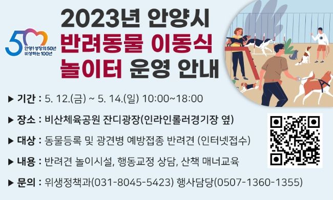 최대호 안양시장은 “반려동물 가족이 급증하고 함께할 수 있는 공간 수요도 증가하는 만큼 하반기에도 이동식 놀이터를 운영할 예정”이라며 “앞으로도 반려동물과 가족이 행복한 생활을 할 수 있도록 성숙한 반려동물 문화 확산, 동물 복지 증진 등에 힘쓰겠다”고 말했다.