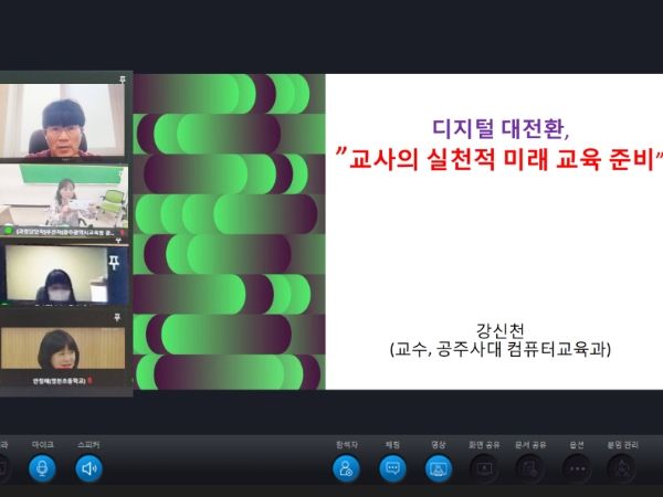미래로 가는 AI교육 실현을 위해 AIEDAP(AI Education Alliance and Policy lab)분야 전문가인 국립공주대 인공지능융합교육연구소 강신천 소장를 강사로 위촉했다. 또 2023년 새롭게 개통된 차세대 지능형 연수 플랫폼인 ’배움누리터 실시간 화상연수‘ 시스템으로 연수를 운영한다.
