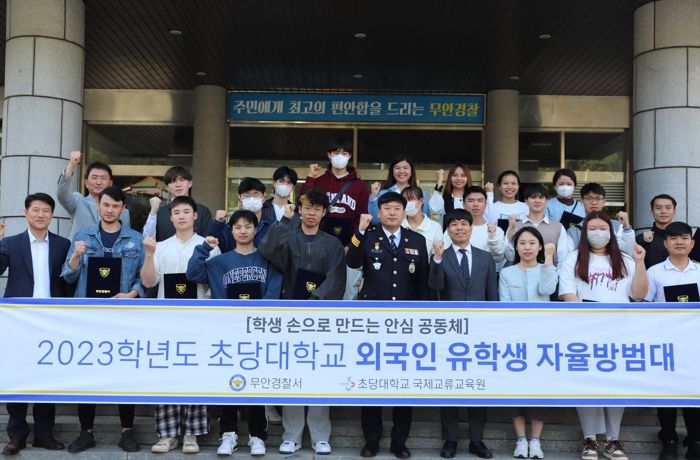 [제주교통복지신문 김강석 기자] 무안경찰서는 5월 9일 김정완 무안경찰서장, 초당대학교 국제교류원 센터장 박상식, 나광현 정보안보외사과장 등이 참석한 가운데 초당대 유학생 20명에게 외국인 자율방범대 위촉장을 수여했다.