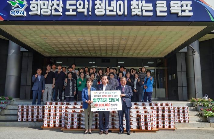 [제주교통복지신문 김강석 기자] 목포농협이 10일 어려운 이웃에게 전해 달라며 열무김치 500상자(1,000만원 상당)를 전남사회복지공동모금회를 통해 목포시에 전달했다.