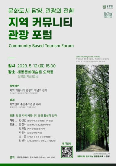 [제주교통복지신문 김강석 기자] 담양군문화재단이 12일 문화도시 담양 연계의 ‘지역 커뮤니티 관광 포럼’을 개최한다.