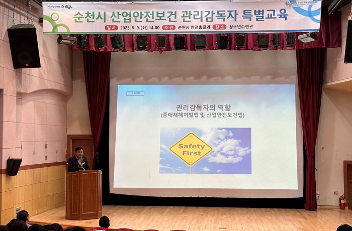 [제주교통복지신문 김강석 기자] 순천시는 지난 9일 청소년수련관에서 팀장급 관리감독자 98명을 대상으로 산업안전보건 특별교육을 실시했다.