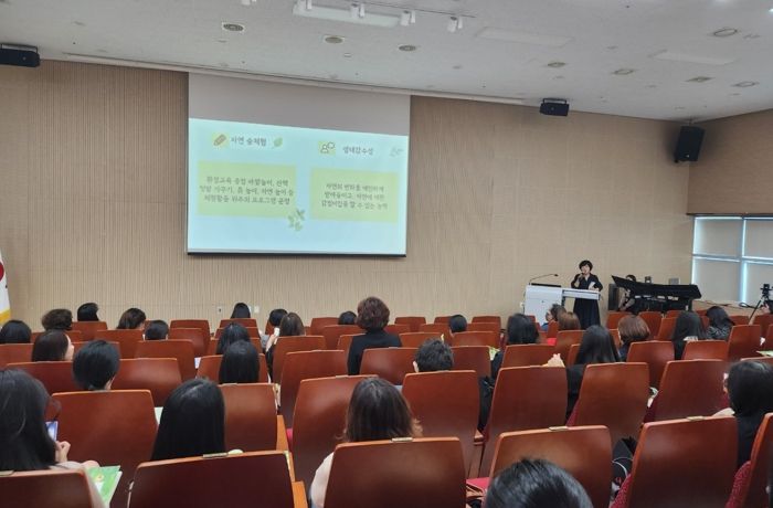 이와 관련하여 지난 9일에는‘생태계와 공존하며 살아가는 지속 가능한 삶을 위한 자연 숲체험유치원 업무담당자 배움자리’를 실시했다. ▲ 자연 숲체험유치원 사업 방향 안내 ▲ 자연 숲체험 활동으로 생태감수성 기르기라는 주제로 전년도 운영 사례를 공유하는 자리를 가졌다.