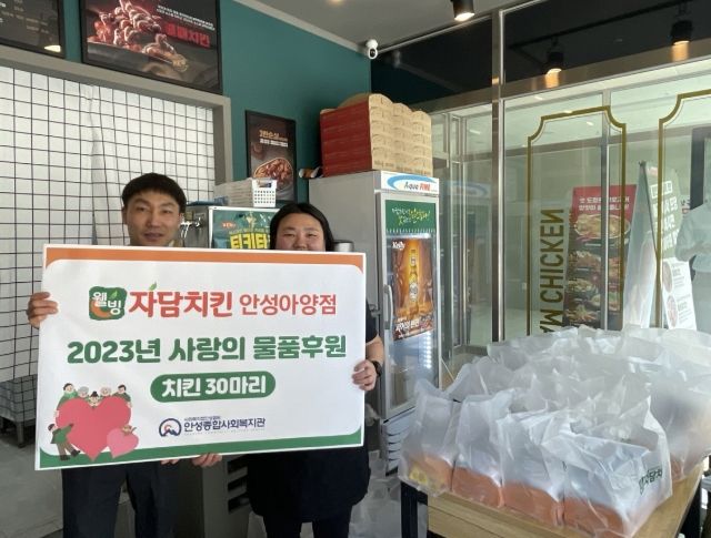 자담치킨 안성아양점은 2022년부터 명절, 크리스마스, 어린이날, 어버이날 등 정기적으로 지역사회 소외된 이웃을 위해 치킨을 후원하며, 지역복지 실천에 앞장서고 있다.