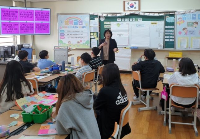 이중 ‘찾아가는 비경쟁 독서토론 교실’ 프로그램은 공감과 경청, 질문을 기반으로 한 비경쟁 독서토론 방식을 통해 세계시민으로의 학생성장을 도모하고자 추진한다. 그림책 속 이야기로 교실 속에서 현실과 상상을 넘나들며 질문을 통해 인류의 보편적 가치를 이해하고 실천하는 책임 있는 시민 의식을 갖추는 경험을 제공하고자 한다.