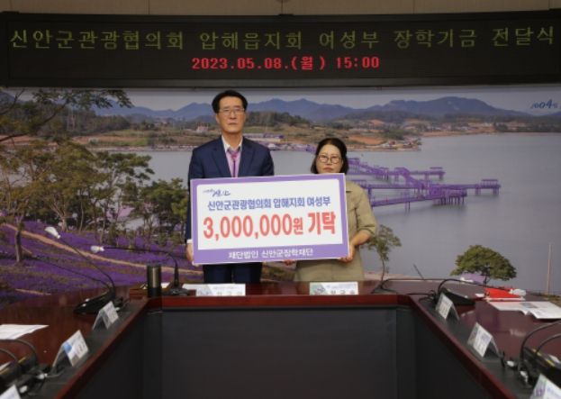 [제주교통복지신문 김강석 기자] 신안군관광협의회 압해읍지회 여성부 임회원들은 지난 8일 신안군청을 방문해 어려운 학생을 위해 써달라며 장학기금 3백만 원을 신안군장학재단에 전달했다.