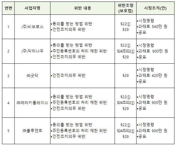 이에 따라, 개인정보위는 보호법 위반사항에 대하여 사업자들에게 3,660만 원의 과태료 부과와 함께 시정조치를 명하고 그 이행결과를 제출하도록 했다.
