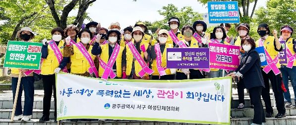 [제주교통복지신문 김강석 기자] 광주광역시 서구는 지난 9일 5·18 기념공원에서 서구 여성단체협의회 회원 20여명이 참여한 가운데 4대 폭력 예방 캠페인을 실시했다.