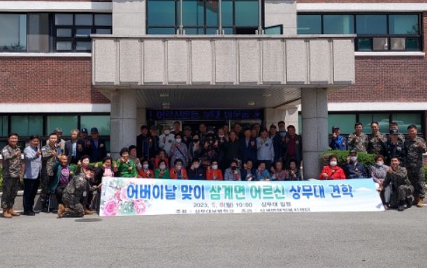 군에 따르면 어버이날인 8일, 상무대 보병학교가 삼계면 어르신 50여 명을 상무대로 초청해 기념 행사를 가졌다.